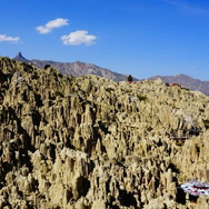 We vonden bij La Paz een heerlijke camping, vanwaar we met lokale busjes naar het centrum konden. Niet dat we La Paz per se wilden bezoeken, maar we moesten nu toch wel echt een campingstoel hebben. Ook zijn we gezwicht voor wandelstokken, en hebben we een Primus gascooker aangeschaft (op elke hoogte, en met elke brandstof te gebruiken, hiephoi!). Uiteindelijk hebben we ook nog de teleferique (van Doppelmayer, het was net of we op wintersport waren) genomen en concludeerden dat de stad er van bovenaf iets beter uitzag, en vooral meeeega-groot is, en een wandeling in Valle de la Luna, waar vreemde door wind en water uitgeslepen rotsformaties zijn (we hadden hetzelfde uitzicht vanaf de camping, dus hadden het snel gezien).
